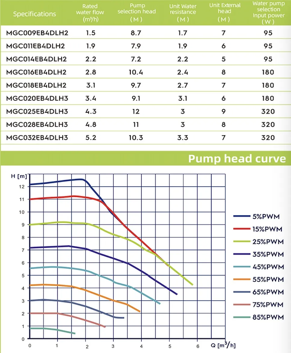 | Water pump | Rated power (W) | 0-95 | 0-180 | 0-320 | - | ||||||||||||||||||||